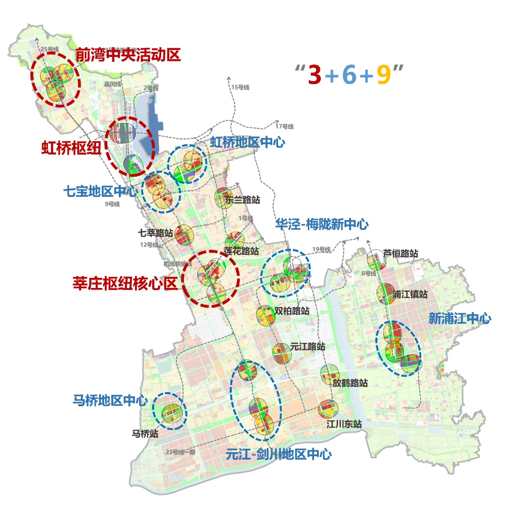 作为上海轨道交通建设的先行者,在TOD开发大潮中的闵行也将争做全市“排头兵”。闵行将以轨道交通为引领,打造品质卓越、高效复合、活力共享的TOD发展示范区。未来,将与区总体规划公共中心体系相对应,建设成“3+6+9”的TOD中心格局,包括3个城市TOD中心、6个地区TOD中心和9个社区TOD中心。