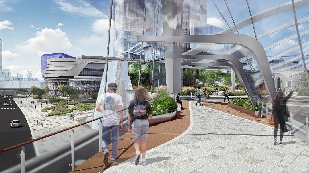 项目用地性质为商办、租赁住宅、酒店、会展、文体等多业态混合用地,占地面积约32万平方米,总建筑面积约170万平方米,其中地上建筑面积约109万平方米,地下建筑面积约61万平方米。