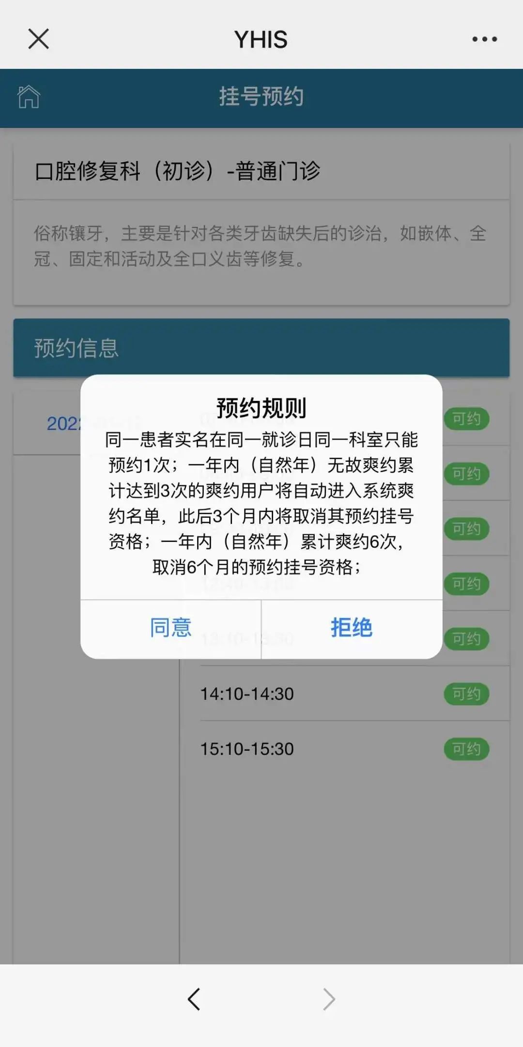 ②仔细阅读预约规则并点击“同意”