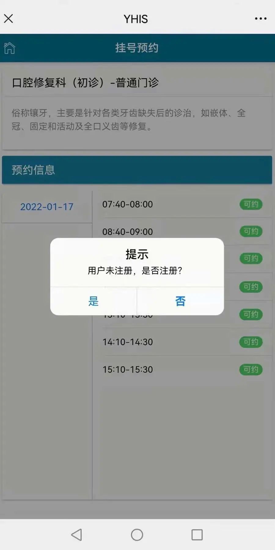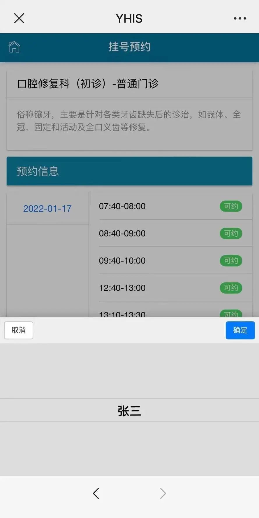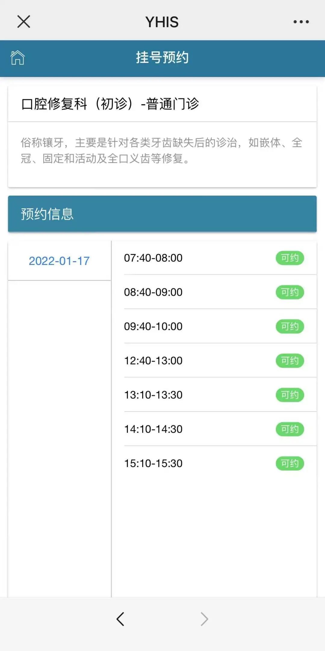 ①选择预约日期及挂号时间段