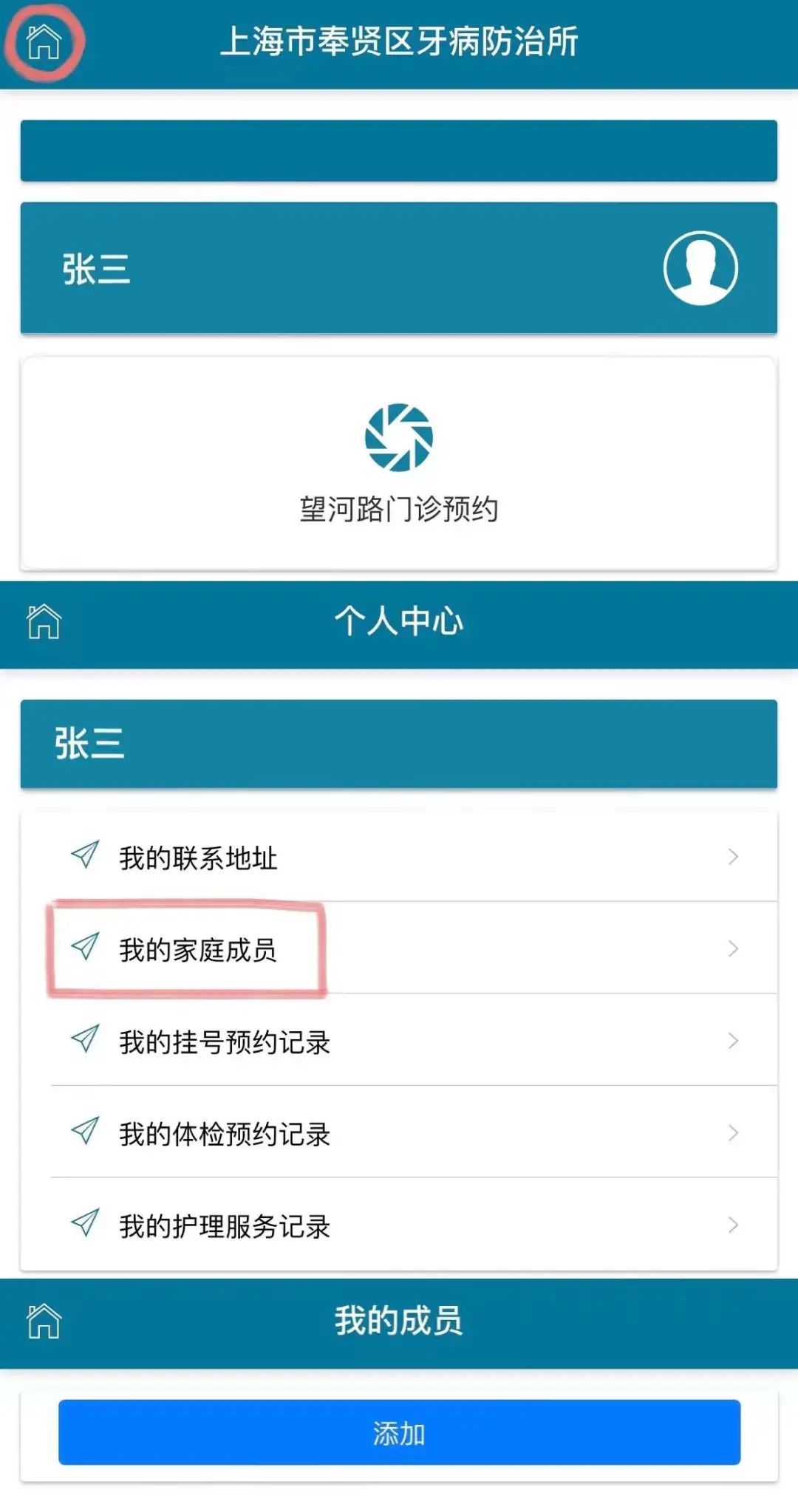 ②选择“我的家庭成员”后添加