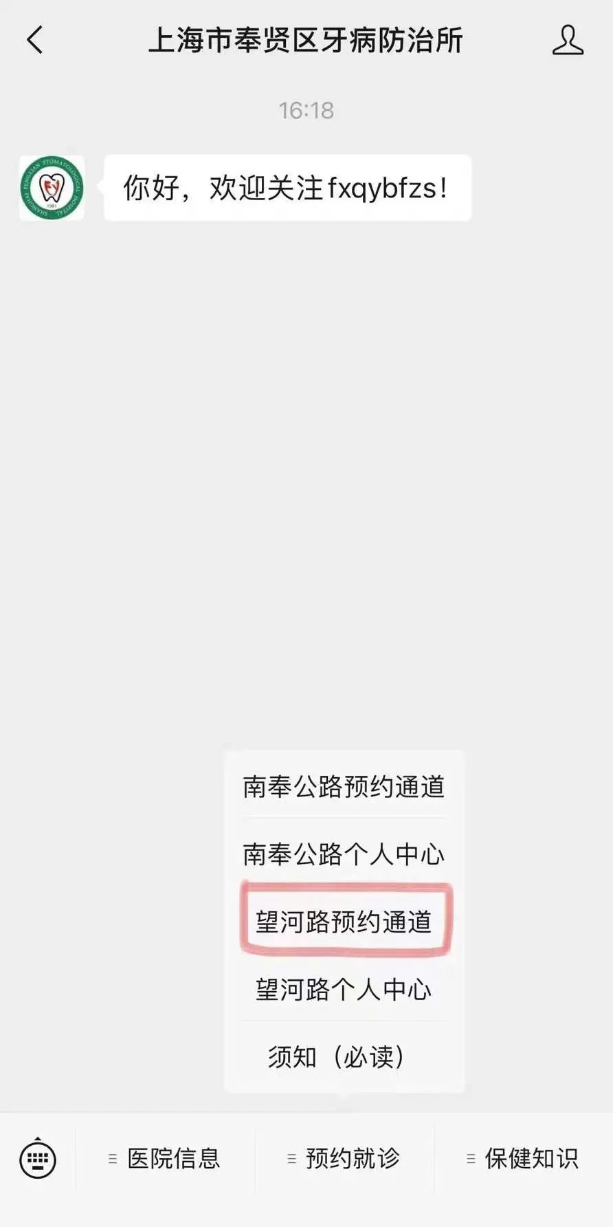 预约系统试行阶段仅支持“上海市奉贤区牙病防治所”微信公众号平台预约。如有相关问题或意见可至预检台反馈。