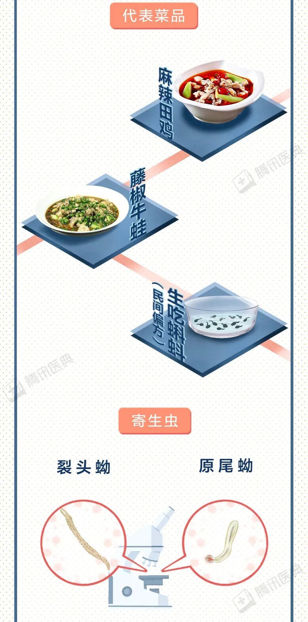 醉蟹、麻辣牛蛙、生鱼片、鲜牛肉火锅……这些美食里,可能有寄生虫。吃下去,游荡在你的身体里,大脑、肝脏、肠道……记住下面这些食物,能不吃就别吃!