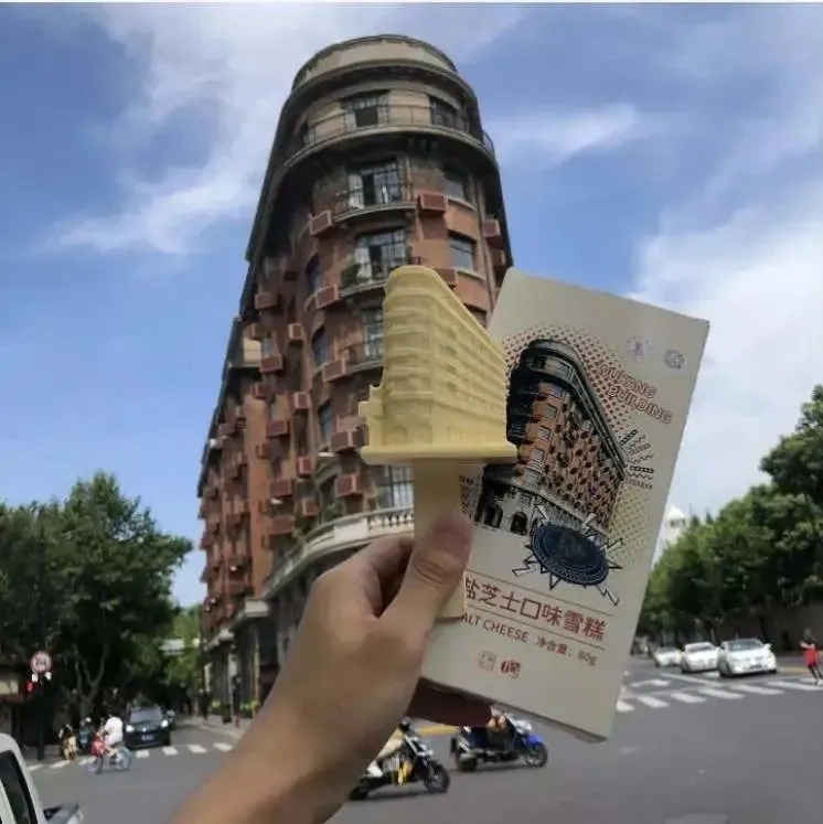 武康大楼还延伸各类文创产品,“网红”雪糕总是刚刚上架就一抢而空。奶油芝士风味的雪糕,造型完美呈现武康大楼最佳打卡点角度的形貌。