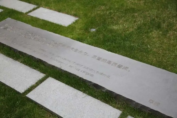毗邻衡复艺术中心,有两处文化名人旧址,那就是草婴书房和夏衍旧居。草婴书房外是一片草地,冬日里依然绿草茵茵。草坪上铺着刻有草婴名言的石板,彰显了草婴坚韧、自由、不屈的精神品格。