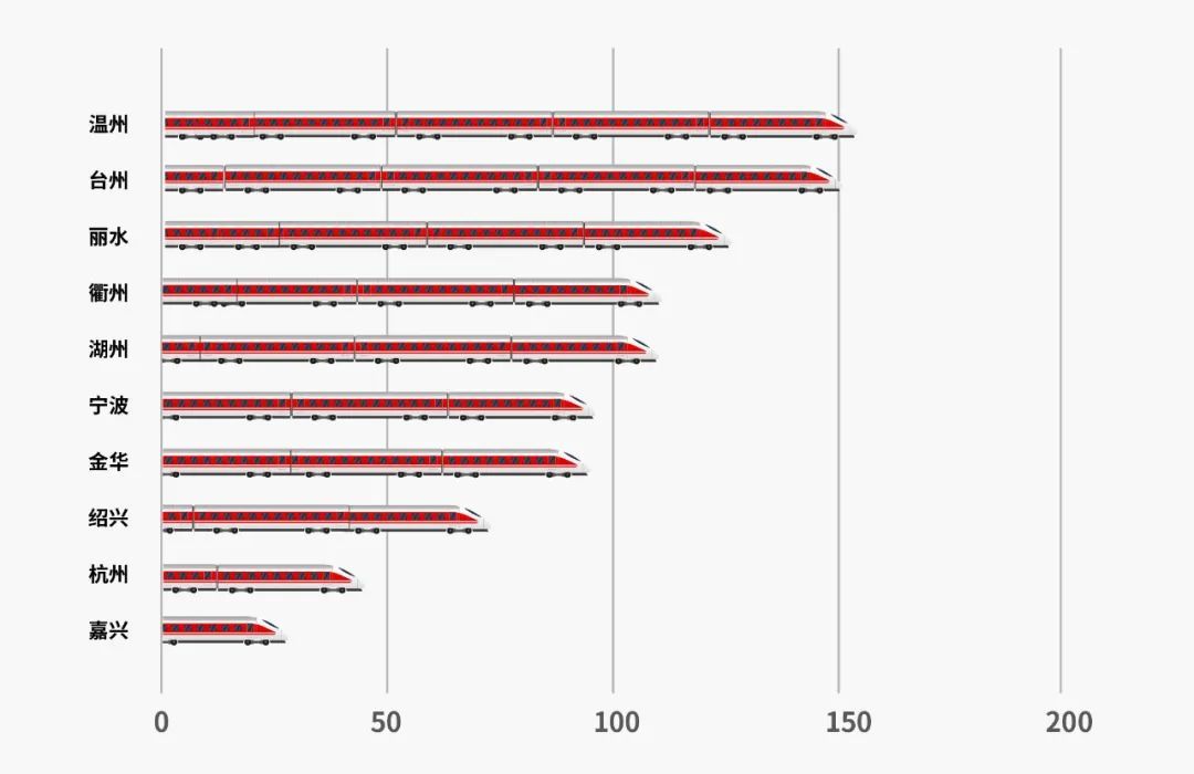 杭台高铁于1月8日开通运营。新图中,杭台高铁安排动车组列车线条35对,杭州至台州最快运行时间为1小时03分钟,较经由杭深高铁最快运行时间压缩47分钟,沿线人民群众乘坐高铁可直达杭州、上海、南京、合肥、北京、天津、福州、厦门、深圳等城市。根据局部地区疫情防控需要和客流需求情况,铁路部门将精准实施“一日一图”,动态调整杭台高铁列车开行方案。