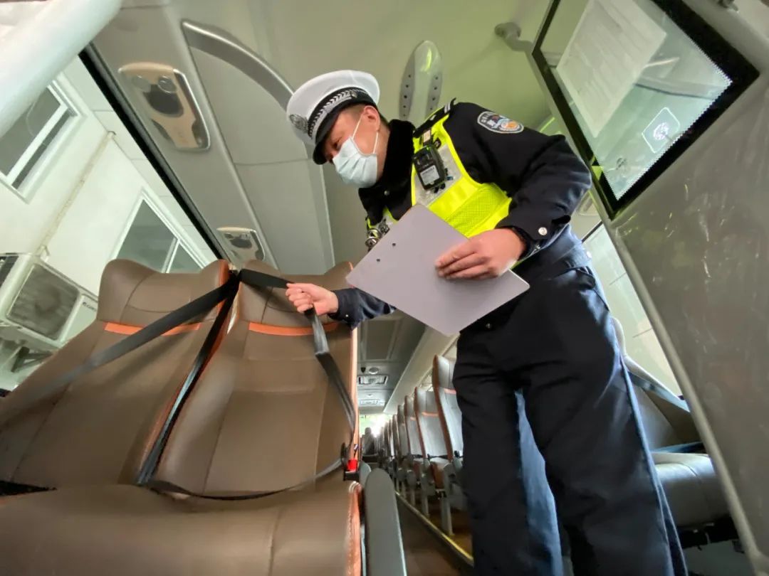 交警将重点检查是否按要求粘贴最高限速标识和系安全带警示标贴,安全疏散通道、逃生门窗有无醒目标记、是否畅通,保险带、灭火器、安全锤等安全防护装置是否齐全、有效,燃料箱和管路、电路及手动开门器等有无故障或隐患。对应安装行驶记录仪的公路客运和旅游客运汽车,检查行驶记录仪及其连线安装是否固定可靠,显示是否正常;车辆实际座位数与行驶证记载的项目内容是否一致等。对车辆制动、转向、轮胎、灭火器、紧急情况逃生设施等重点项目严格把关。都符合标准的车辆才能有资格取得“春运证”。
