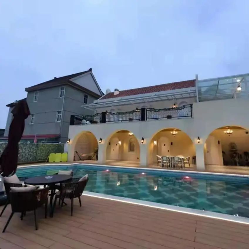 在中兴镇红星村,一座地中海风格的民宿在乡野中显得尤为引人注目,蓝白相间的主色调,弧形走廊,度假风十足。民宿里设置了咖啡厅,有意式、美式、卡布奇诺、拿铁、玛琪雅朵等多种口味,还有桌游、泳池,让你忍不住拍照打卡。