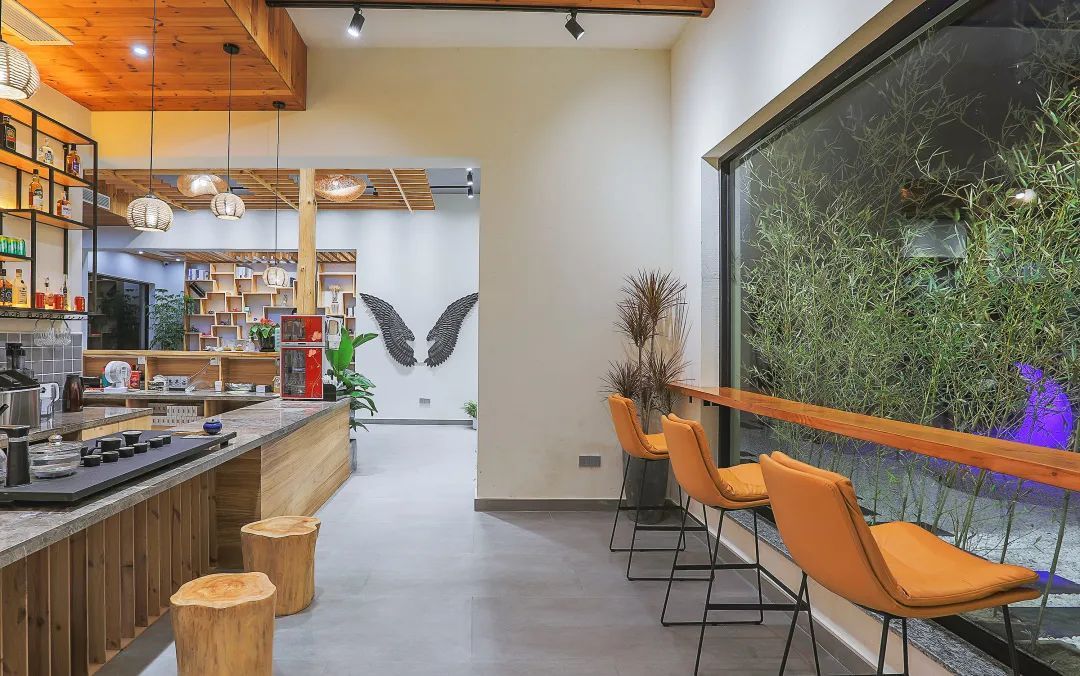 民宿院内设有独立的咖吧,提供现磨咖啡、鲜榨果汁、花茶等饮品。后院有3000平方米的池塘,可供休闲垂钓,门口小河可捉鱼、捕虾,树林里还有滑滑梯、吊床。