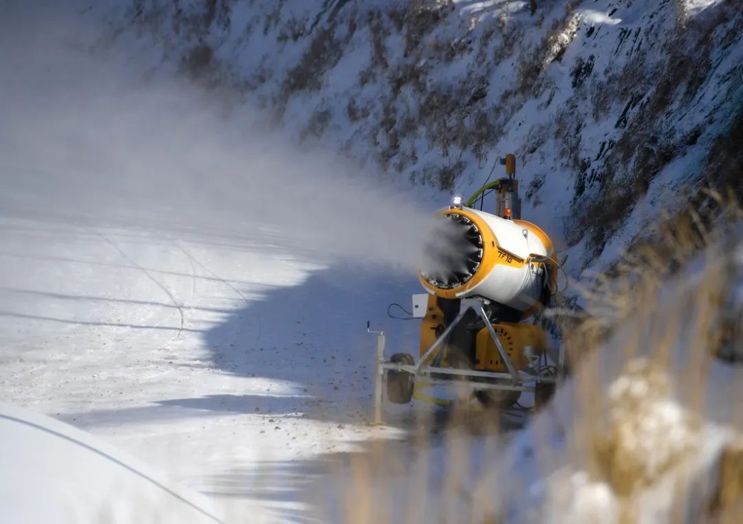 通常人工造雪都是使用“雪炮”式造雪机,它利用高压空气将水流打碎成细密的雾状,这些水雾遇到寒冷的外部空气,就会在落地之前快速凝固成为冰晶,变成人们所熟知的雪花。
