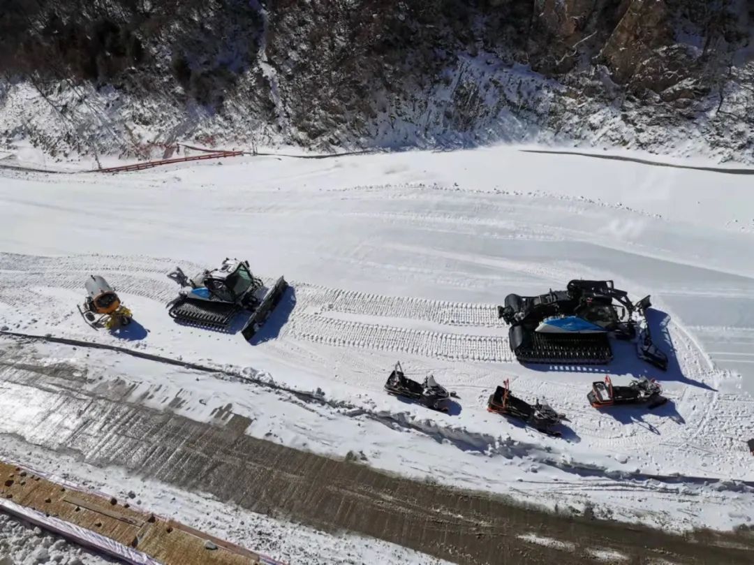 延庆赛区雪道上停靠的推雪车和造雪机等设备 l 记者马晓芳 摄
