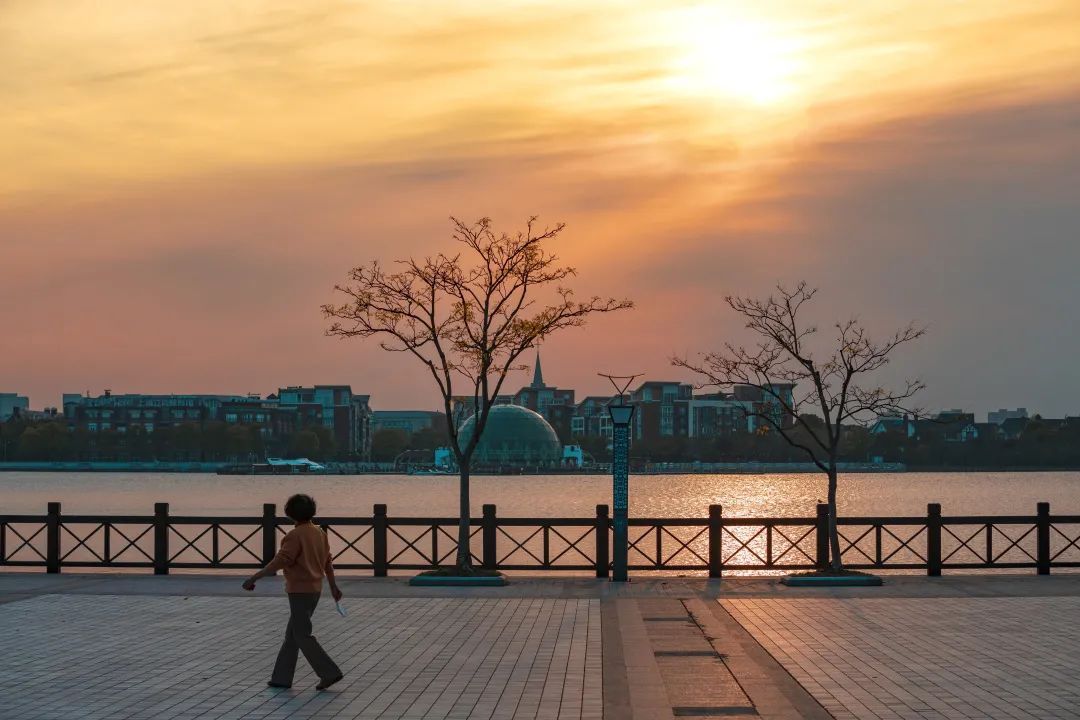 栖一湖以览天地,坐在湖畔座椅上能看到迷人的景观。湖光云影为序、斑斓色彩为底,听雀鸟低语、赏花草郁郁,在繁华与静谧间,营造一处境心相契的空间。