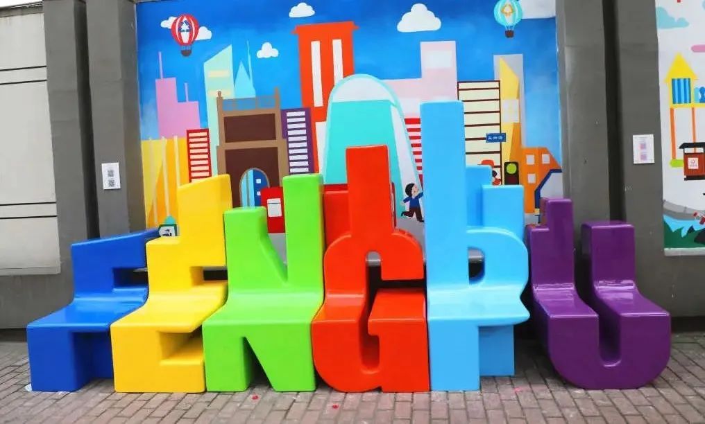 FENGPU椅以“奉浦街道”的拼音字母为设计理念,将座椅设计成柱状座椅,表面光滑、色彩丰富,大人小孩皆可休息观赏。而椅子背后的墙绘,以奉浦的地标性建筑——奉贤区青少年活动中心“海之花”、奉浦四季生态园“唐顿庄园”等特色建筑为设计原型,环卫工人、环卫车、垃圾分类桶等井然有序,展现了奉浦摩登的城市氛围。