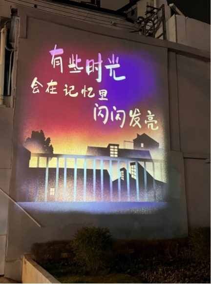在灯光的打造上,以周边建筑、绿植、河岸等为载体,在光陆大楼顶部,用光束灯模拟皓月当空,静谧的月光穿过紫藤形成斑驳的影;在沿岸绿植间,用定制的蝴蝶灯、萤火虫灯等灵动的造型灯营造浪漫的氛围,将灯光与雾泡机、雾森机等氛围设备相结合,打造出光影摇曳的婆娑林荫道投影景观,使人仿佛漫步在水气充盈的林间小路。
