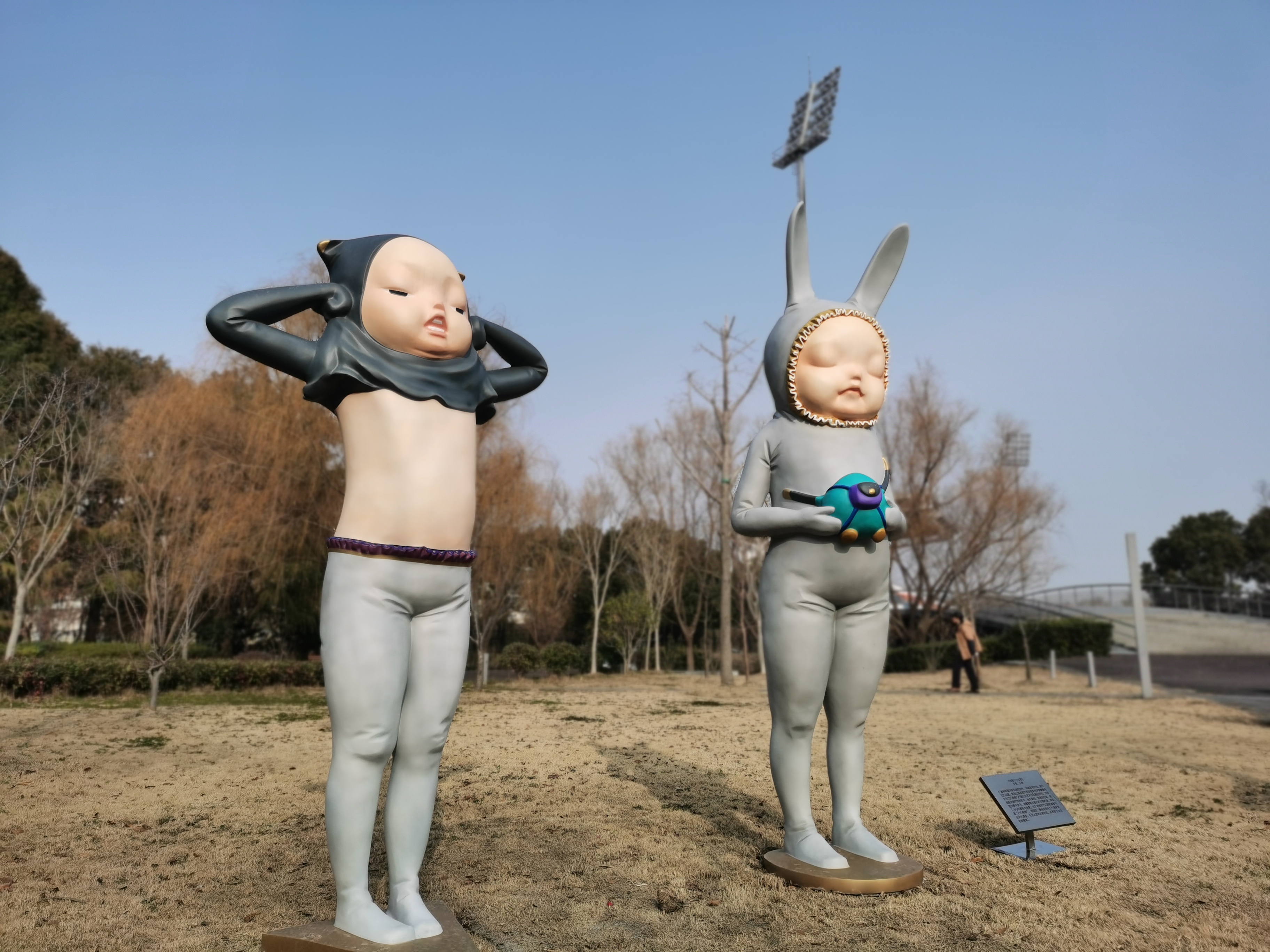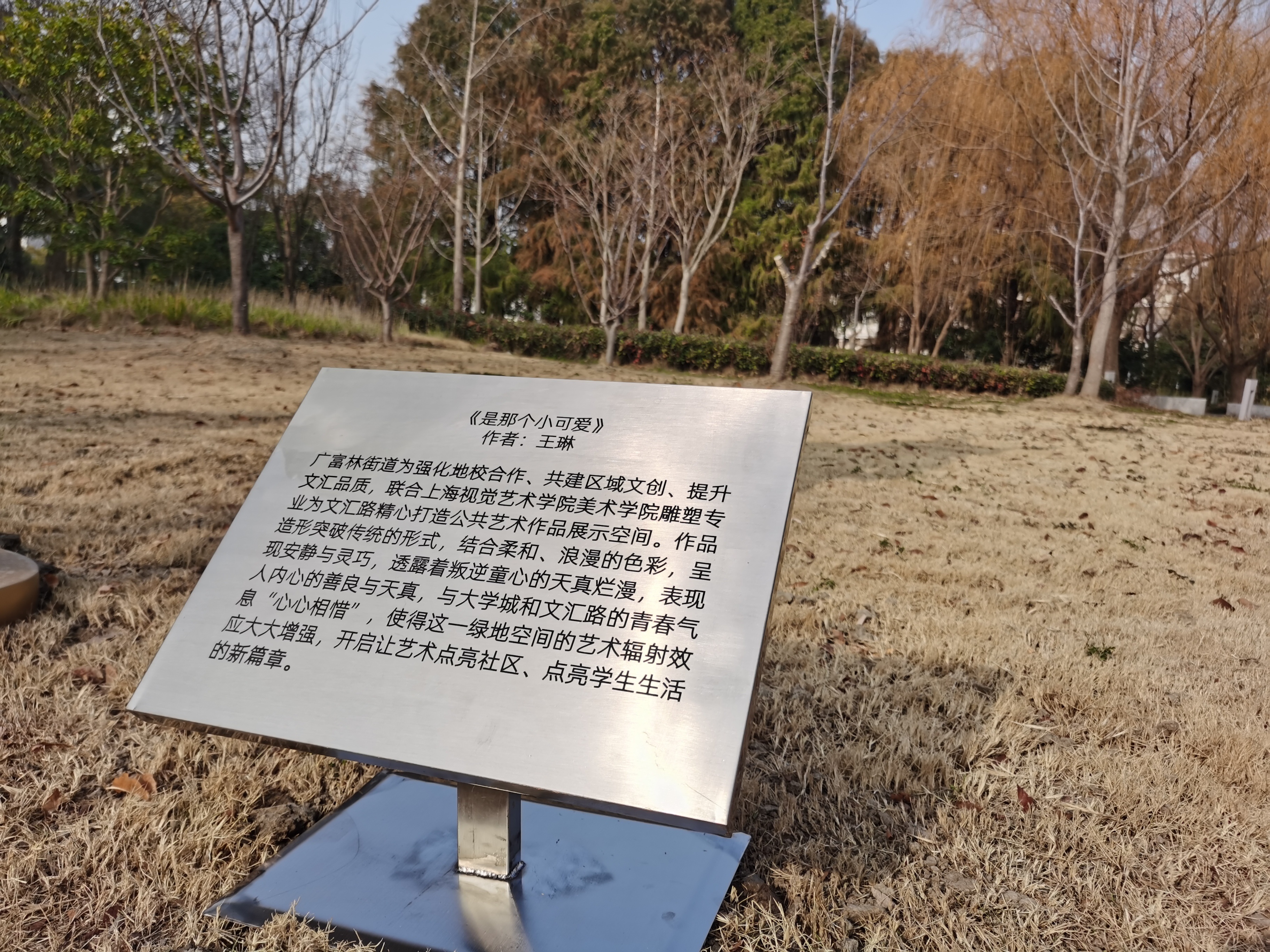 上海视觉艺术学院雕塑专业教师王琳介绍,“就是那个小可爱”以家中小孩为创作原型,造型天真烂漫又不乏张力,与文汇路的青春气质相符。“在松江生活了十多年,看过不少公共空间雕塑,大多都偏向于传统类型,希望能有更多突破传统形式的文创类作品入驻,为城市空间注入活力。”王琳说。