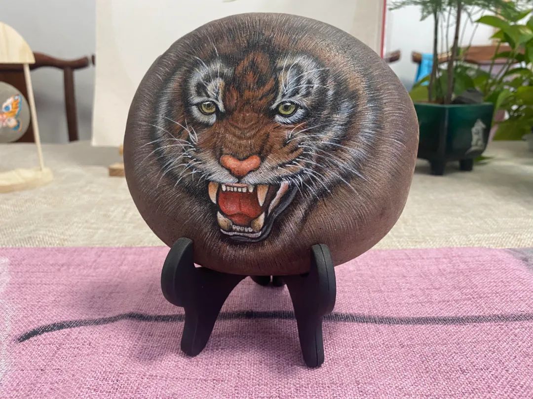 “石头画风格多变, 可以是抽象的油画风格,也可以大写意、小写意的国画风格。如果水一下子用多了,丙烯在石头上出现晕染的效果,你可能就画出了水彩的效果。”对于石头画,李琴说起来滔滔不绝。