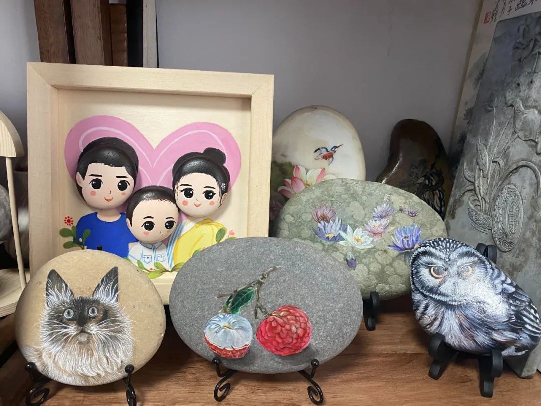 目前,李琴还在上海市配送平台宣传石画艺术,希望让更多的人喜欢石头画、认识石头画,一起分享石头绘画的快乐人生。