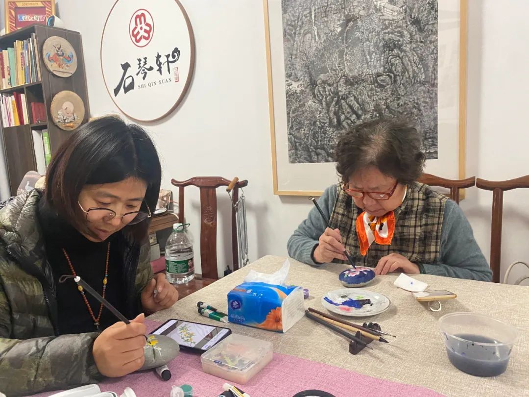 浦江居委党总支书记蔡玉红介绍表示,原来小区的绘画工作室就有油画、素描和刀画,李琴到西渡街道定居后,工作室又增加了石头画兴趣班供居民们选择。寒假期间,李琴也为小区内的青少年开设了绘画课 。