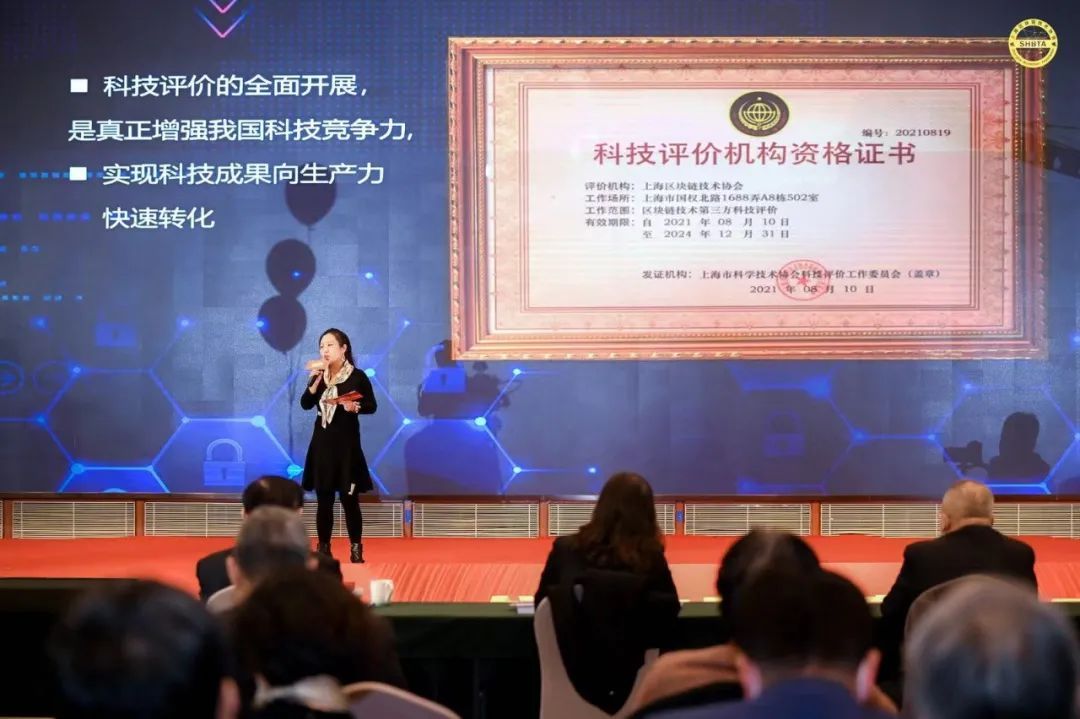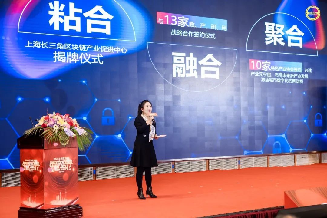 中国科协委员、上海区块链技术协会执行会长、上海长三角区块链产业促进中心理事长王奕作“链你我 赢未来”主题分享,她表示,区块链作为数字经济重点产业之一,是发展数字经济和建设数字中国的重要技术载体,也是产业革新的“助推器”。并分析了区块链在上海各区、长三角及全国区块链的应用落地,聚焦领域和数字化产业的特色。去年协会举办了20余场品牌沙龙活动,100余次“迎进来走出去的”的交流活动,398篇原创公众号发文,101家媒体支持单位,整体阅读浏览量超87万余次。并获得了科技评价机构的第三方资质证书,科技评价的全面开展,是真正增强我国科技竞争力,为科技创新提供参考,助力企业乘风远航,为行业建设做明确指引。上海将发挥“四大高地”、“三大样板”将结合长三角一体化各地优质资源和风貌特色,汇总凝聚成为全国的区块链人才库。