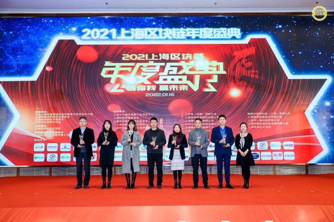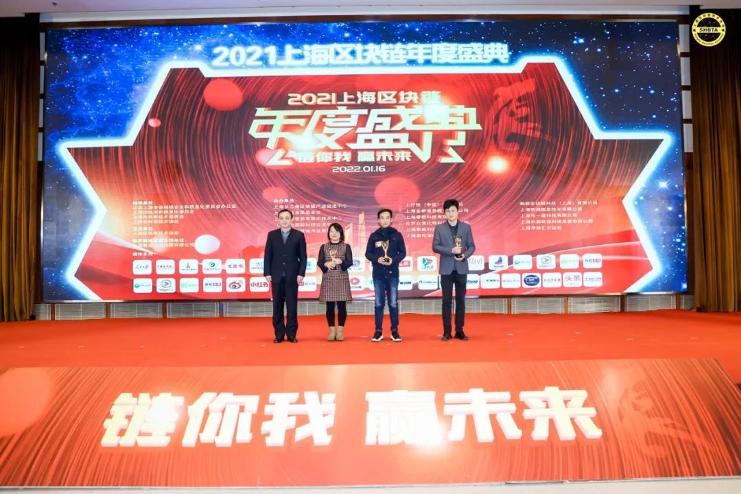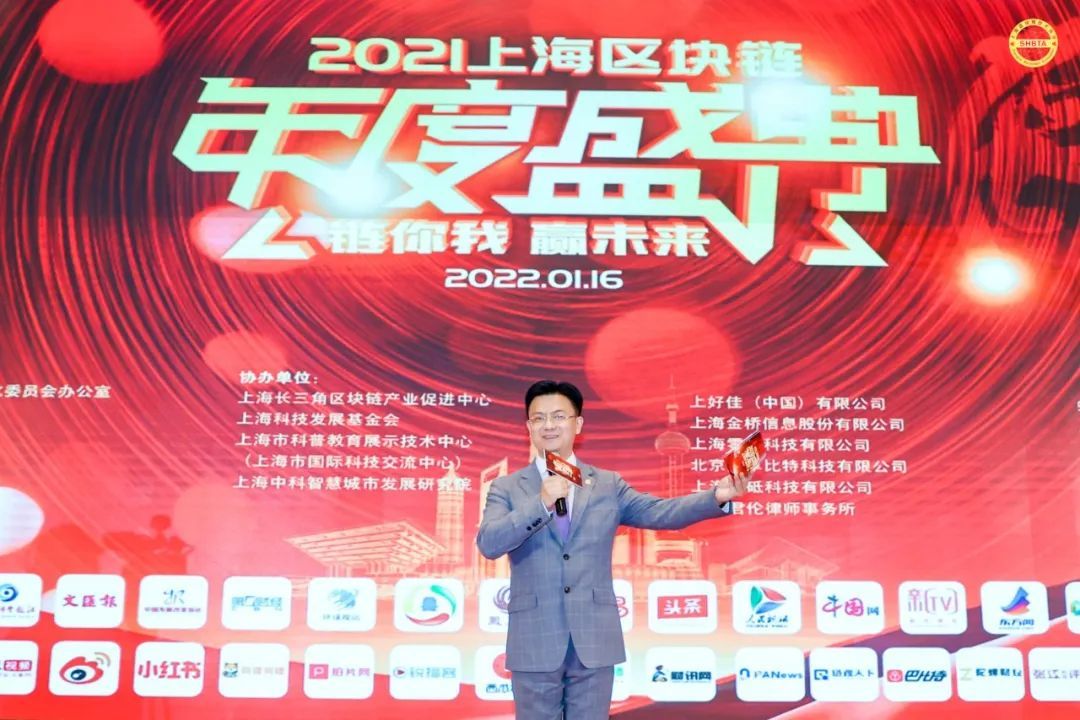 上海市文旅局信息科技处处长张毅为2021年度区块链优秀科技企业颁奖: