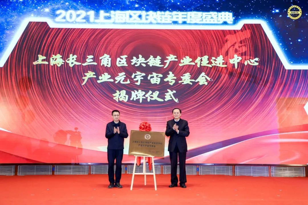 上海市经信委总工程师张宏韬、上海市工业经济联合会会长管维镛为产业元宇宙专委会揭牌