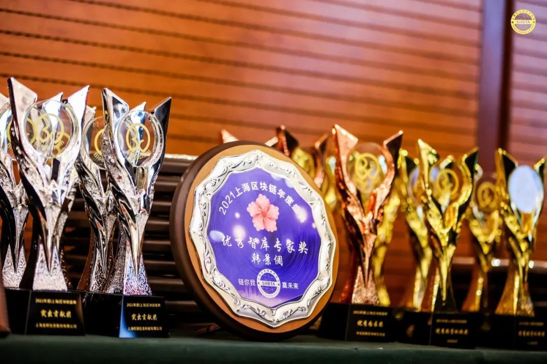 上海市长宁区科学技术委员会主任詹镭为2021年度区块链优秀科技人才颁奖: