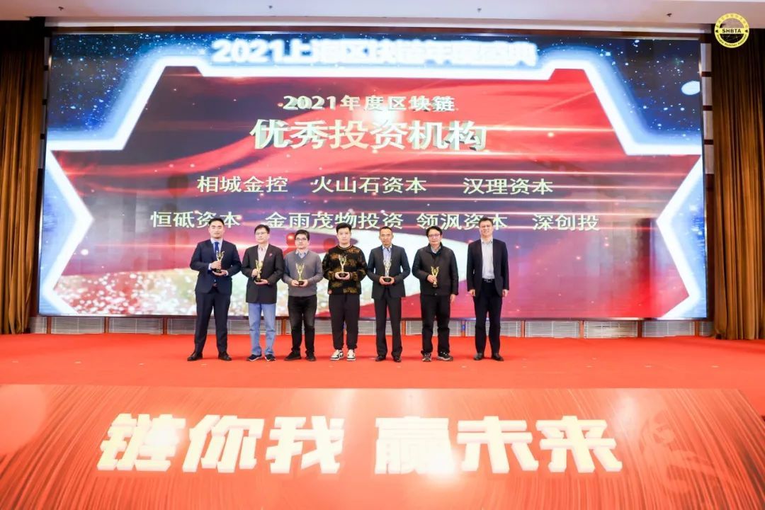 浙江省杭州市余杭区副区长顾斌为2021年度区块链优秀投资机构颁奖: