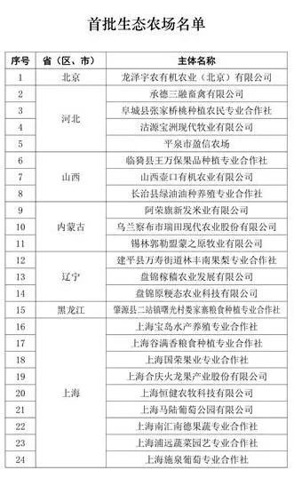 日前,农业农村部农业生态与资源保护总站、中国农业生态环境保护协会公布了首批132家获得“生态农场”称号的生产主体(名单附后)。
