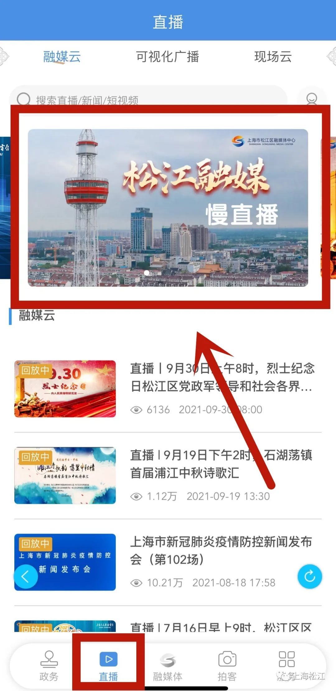 就可以点击观看“松江融媒慢直播”