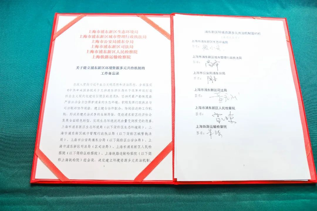 1月19日上午,由浦东新区生态环境局、浦东新区城市管理行政执法局、上海市公安局浦东分局、浦东新区司法局、浦东新区检察院、上海铁路运输检察院共同构建的浦东新区环境资源多元共治机制正式签约。该机制的确立将积极发挥行政执法与司法联动协作效能,逐步实现用最严格制度最严密法治全方位保护浦东的生态环境的目标,将为上海的生态环境治理体系和治理能力现代化建设提供可复制、可推广、可应用的浦东经验,真正发挥引领区的示范引领作用。