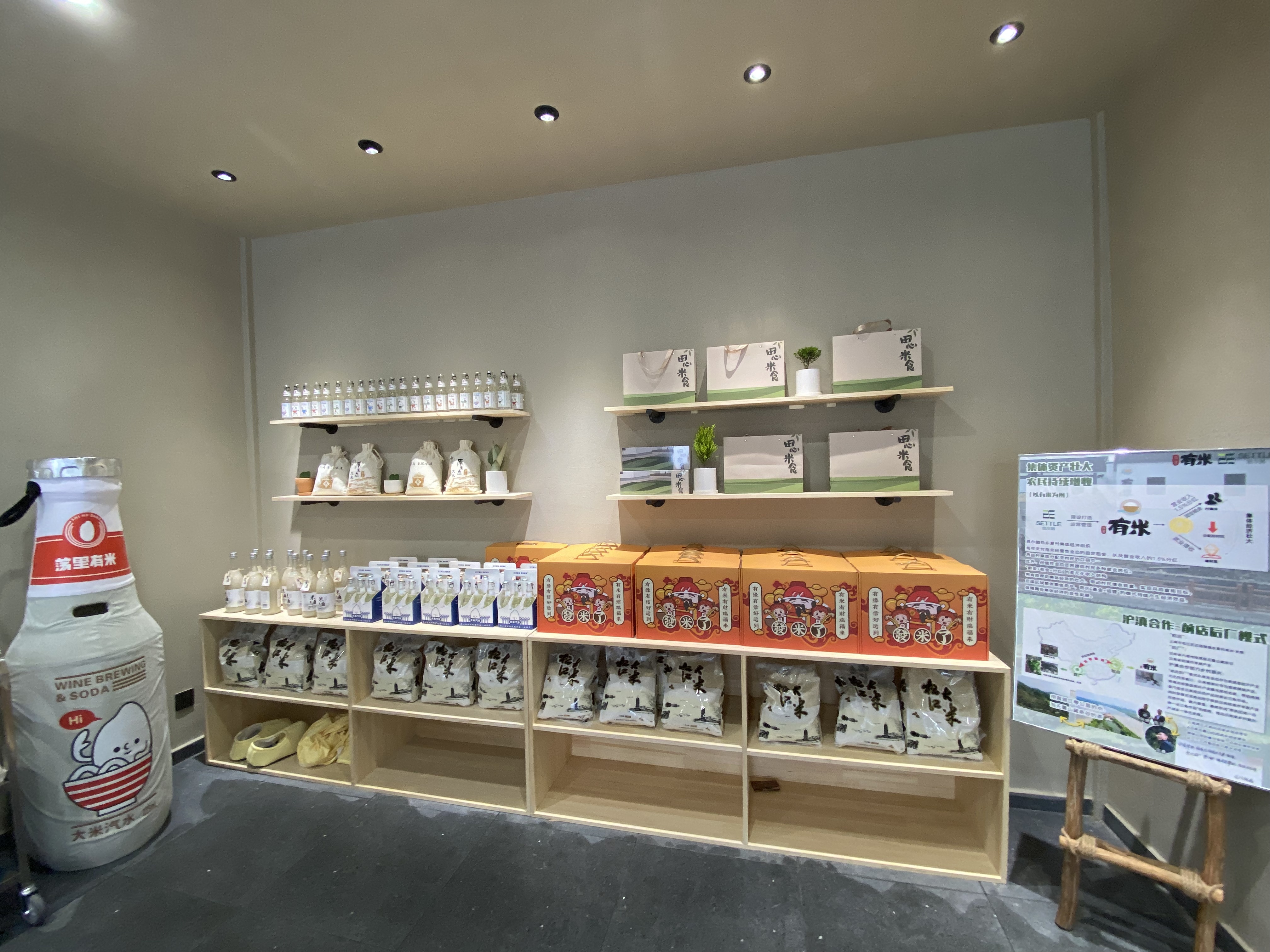 荡里有米产业社区位于距浦江之首景区不远的东夏村沈家浜,作为其中的主力业态,“有米”集文创市集、甜品烘培、土菜工坊为一体,让游客在田间地头“好好吃一顿饭”的同时,也能一览稻田风光,体验乡村之美。