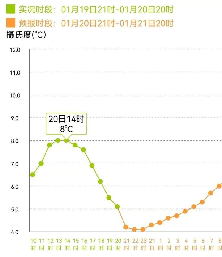 瑟瑟寒风下,昨日白天最高气温只有8~9℃上下,相比前天低了4~5℃;而今天最低气温还要往下掉一点,仅4℃左右。