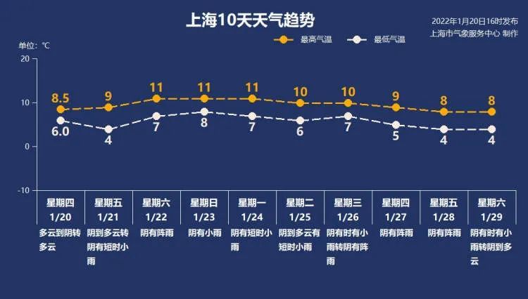 双休日到下周中前期,申城的最高气温在10-11℃,最低气温在6-8℃。