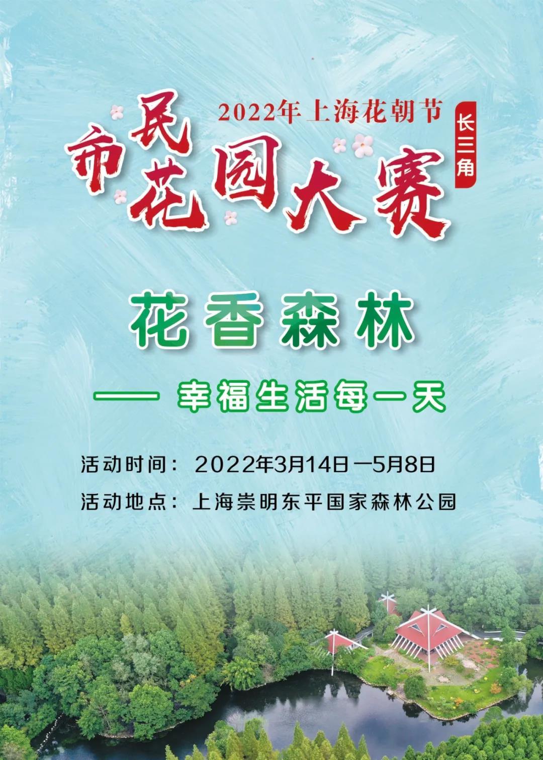 为有效发挥第十届中国花博会品牌延伸溢出效应,着力打造生态旅游发展新名片,2022年上海花朝节将于3月14日—5月8日在东平国家森林公园(主会场)举办,为期56天,“创意花朝”长三角市民花园大赛是本届花朝节主会场重要活动之一。