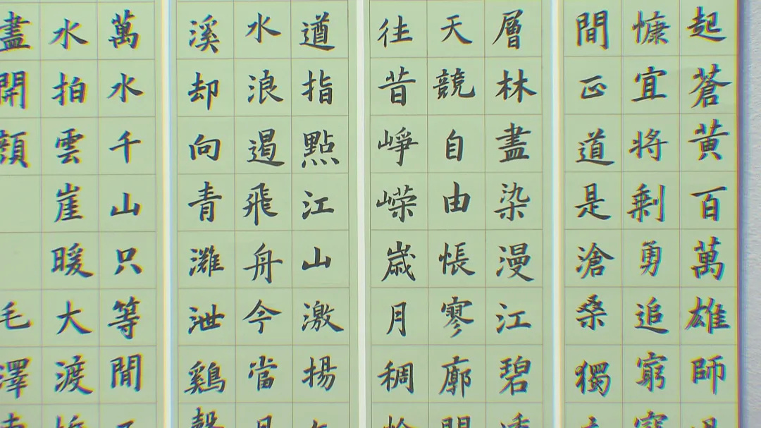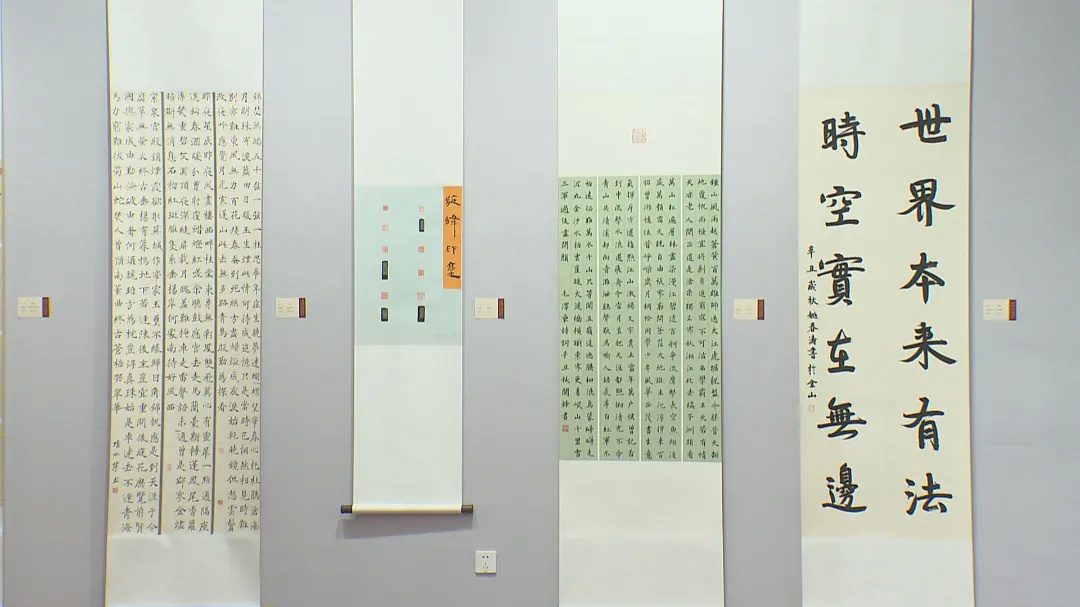 展厅内,悬挂着一幅幅首届“白蕉奖”书法篆刻获奖、提名和入展的作品。来自枫泾镇的娄斌正是此次“白蕉奖”优秀作品奖获得者,他告诉记者,自己接触学习书法也有五年多了。此次参展不仅能获得书法名家丁申阳的点评,还能与志同道合的书法家切磋。