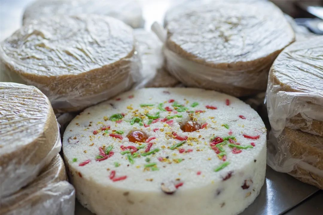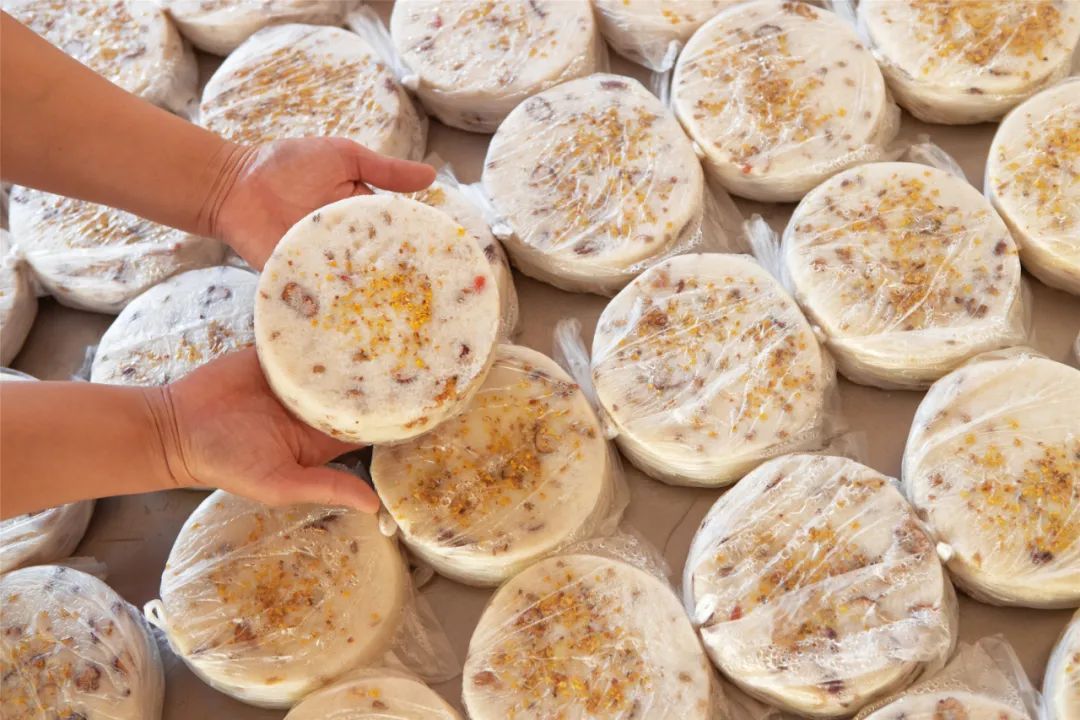 徐行蒸糕作为市级非物质文化遗产,在选料和工序上十分考究。每个蒸糕都选用优质糯米和粳米按1:1混合,经过浸米、淘米、磨米、筛粉、搅粉、蒸糕等步骤制作完成,具有糕香软糯不粘牙的特点。