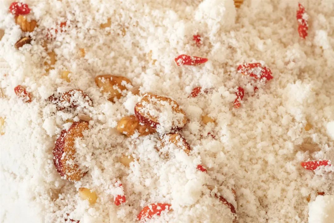 这款华亭米糕有原味、桂花、肉松、豆沙四种味道,相较于旧时口味,甜味更淡、口感更松软,吃起来软糯不粘牙。原材料选用的是华亭双塘村的特优生态大米,细磨蒸煮下,最大程度还原米糕的色、香、味和营养价值。