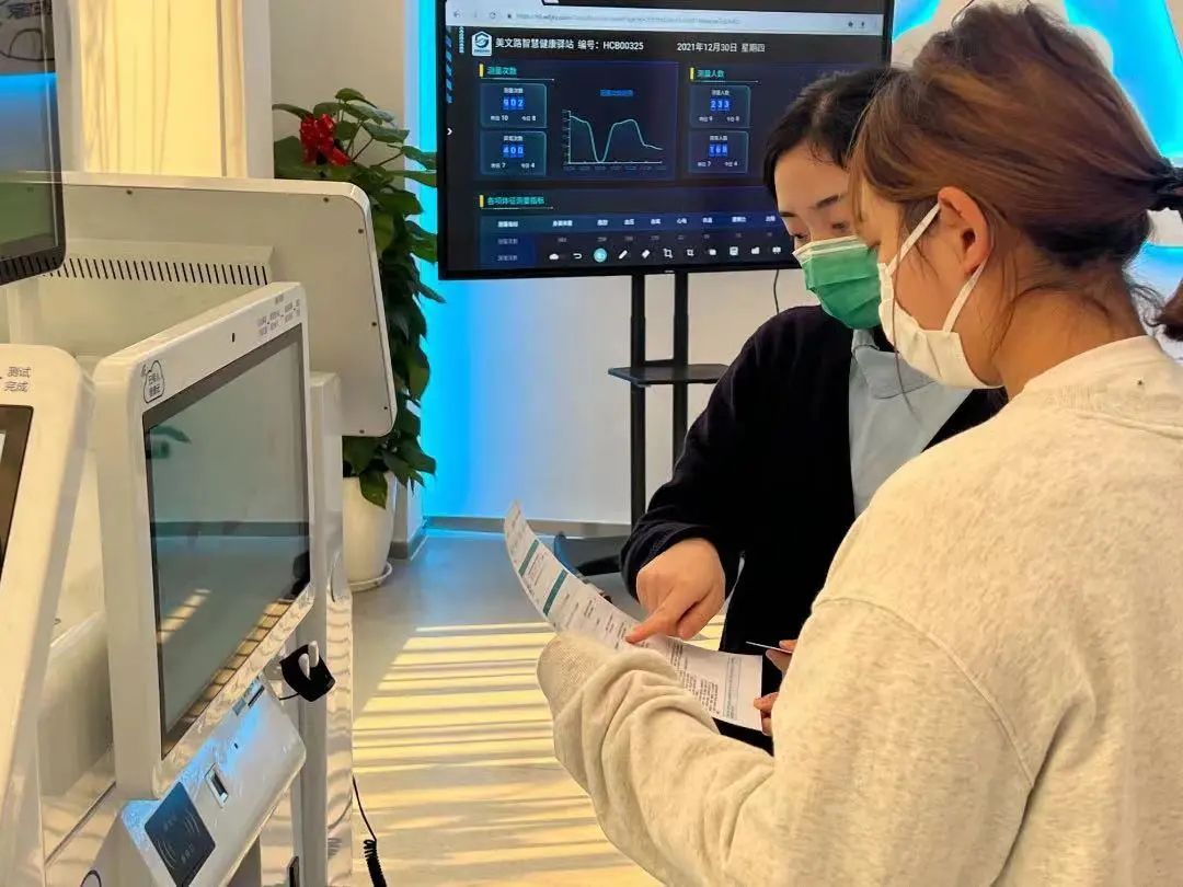 她还记得,有一位70多岁的老人在运动时数值偏高,他们立刻跟进观察。在沟通交流时,他们仔细观察后发现,老人面色红润,数值偏高是因为其正在进行快跑训练。“这位老人自身身体素质过硬,还能‘一字开’”,针对这类情况,他们在确认老人无恙后,便会让其继续课程。居民可以通过线上线下的联动,及时查看个人健康信息,获取自检自评报告,生成指导干预方案。