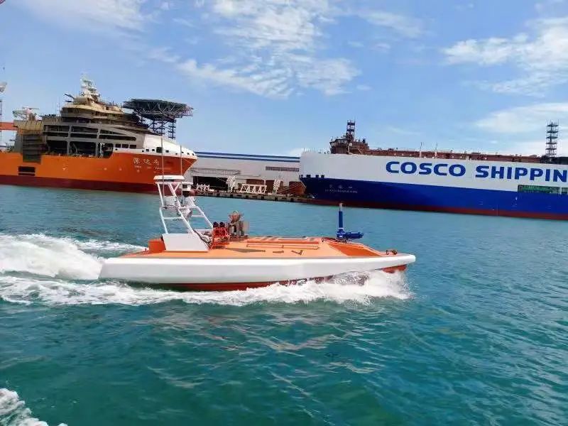 图为团队2020年研制的海洋工程无人艇服务于海洋石油勘探行业