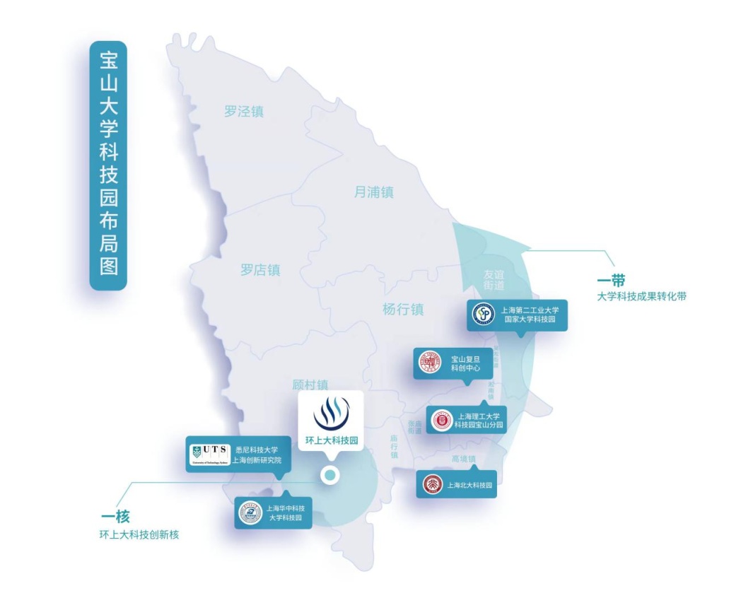 2020年11月,环上大科技园正式开园,作为宝山区打造科创中心主阵地的重要抓手,以科技成果转化、企业孵化、人才培养为核心功能,打造高校科技成果转化“首站”和区域创新创业“核心孵化园”。