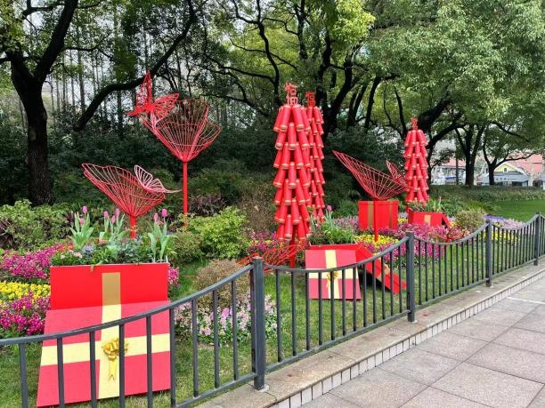 虎年春节日益临近,黄浦的公园绿地都换上了“新衣”,不仅绿化景观靓了,迎新春的节日氛围也日渐浓郁。