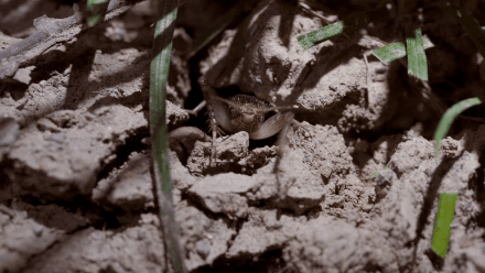 例如为了拍摄蟋蟀之间争斗的画面,团队的工作人员先是在野外捕捉到一只蟋蟀,再另外找到一只蟋蟀的栖息场所,并将捕捉到的这只蟋蟀慢慢引诱到后者的洞口,让两只蟋蟀“相遇”,进而才有了接下来两者争斗的场面。
