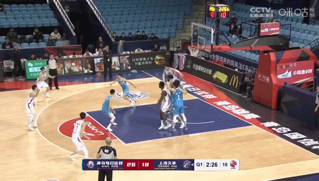 第二节开场,青岛男篮延续上一节攻势。郭昊文上演追身封盖,但依旧被对手补篮成功。上海久事男篮外线未能命中,反而让对手将比分进一步拉开。