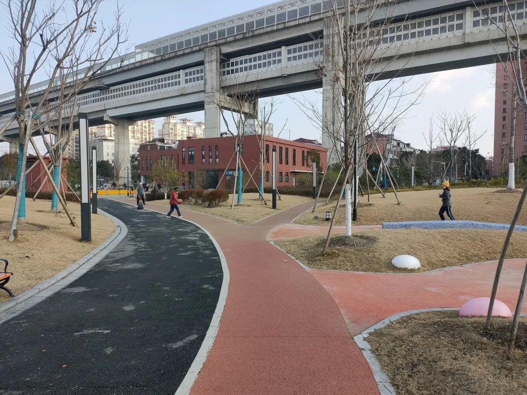 现在从天星路往北走,昆阳新村西侧的“边角料”,已摇身成为居民喜闻乐见的口袋公园,宽敞的篮球场、舒适的环形步道、充裕的休息座椅,以及特别为小朋友设计的沙地,开放后周边居民的感受度非常高。