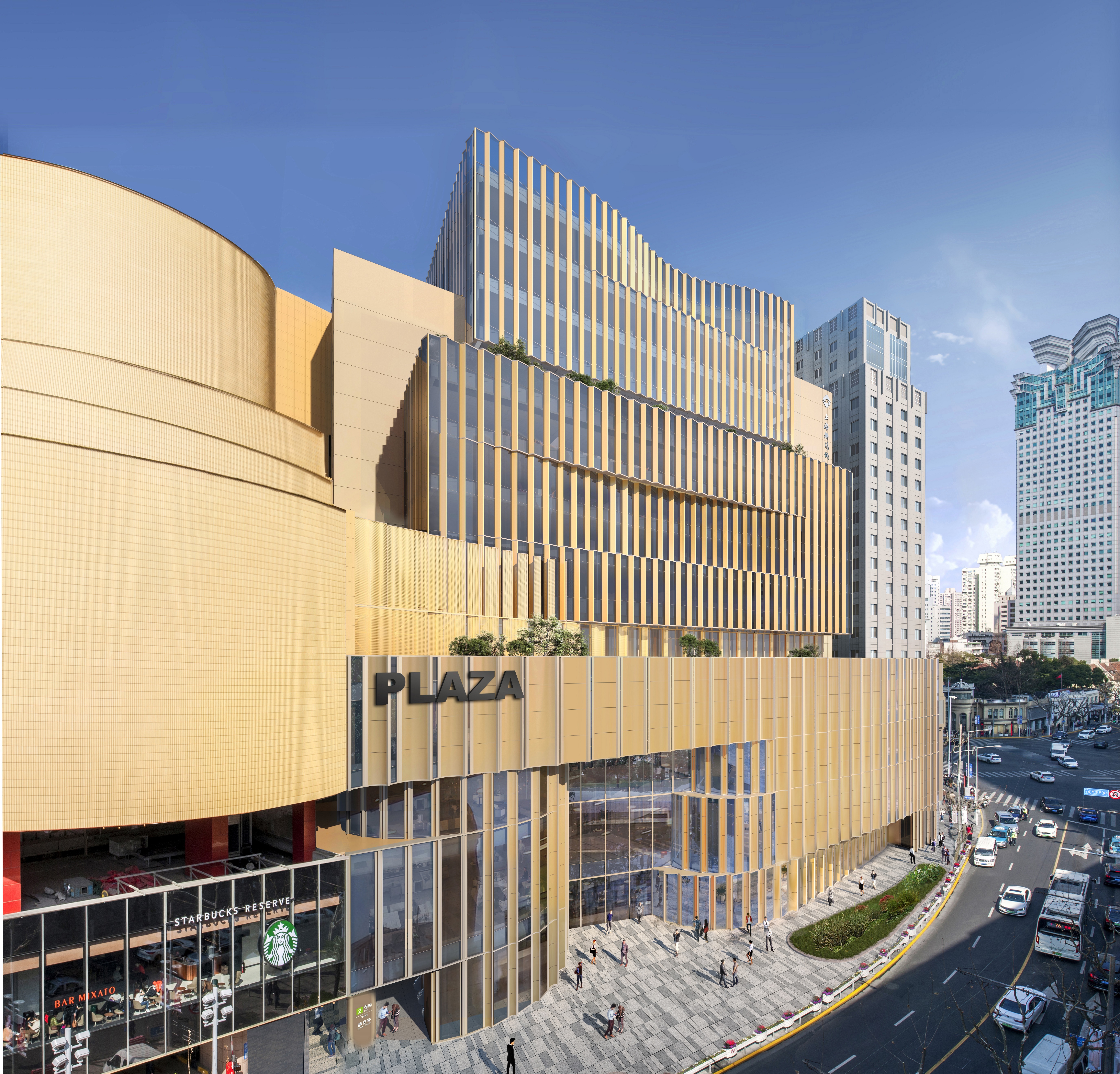 改建后,外立面保留现状建筑三段式退台的形体关系基础,并有所创新。