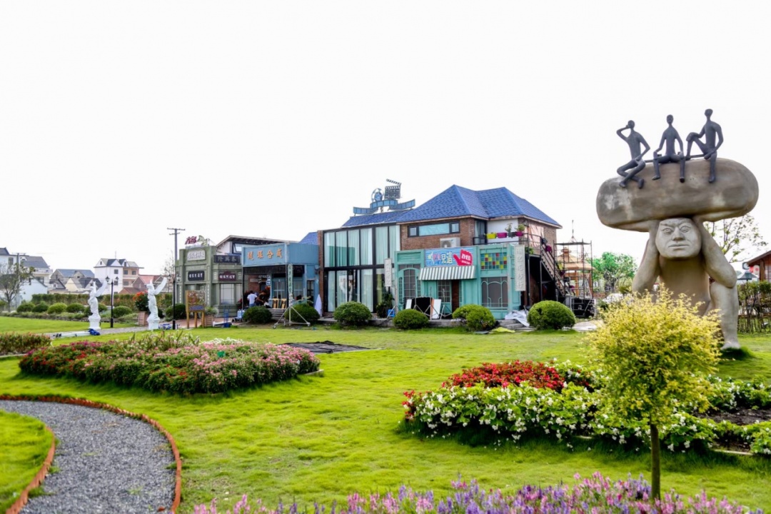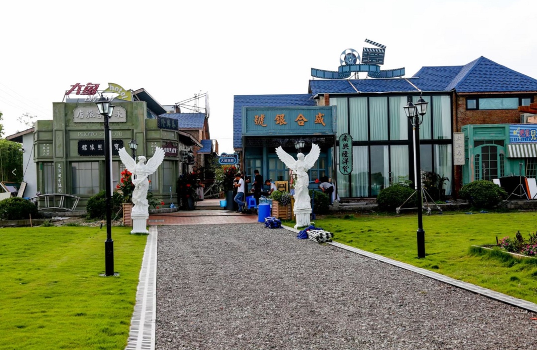 智慧生态花卉园里的两栋西式小楼,是青春喜剧《青春客栈》的主要取景地。小楼处于花田中,四周花草茂盛,还有极具艺术趣味的雕塑,清新田园之感扑面而来。完成拍摄后,主场景部分置景得以保留,供市民游客打卡参观。色彩艳丽的电话亭、巴士停靠站、富有年代特色的影视建筑,分分钟出摄影大片。