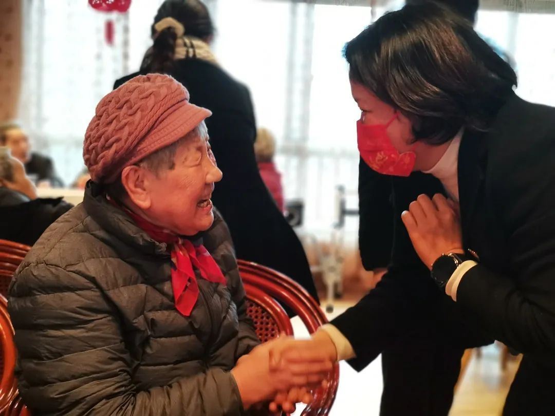 年夜饭现场,护理员们在旁分餐并协助老人们进食,院卫生所的医生、护士们也在旁为老人们的健康保驾护航,并时不时地提醒老人细嚼慢咽。院领导到各个楼层给老人们拜年,将新春祝福送给大家。
