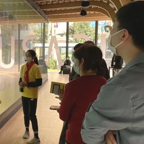 我所在小组的导赏员们大部分都是年龄比我大的哥哥姐姐,有的还是SUSAS的老学员了,与小伙伴们的交流让我十分快乐,他们的能力超出我的想象,是我学习的榜样!我们在每一次导赏经历中不断成长。刚开始讲解的时候,我鼓起好大的勇气去为观众讲解,随着讲解次数的增加,我的讲解过程越来越顺利,观众们都很支持我们的工作,老师也在一旁鼓励我们,我们越来越理解“十五分钟社区生活圈”这个主题,讲解也越来越有温度。