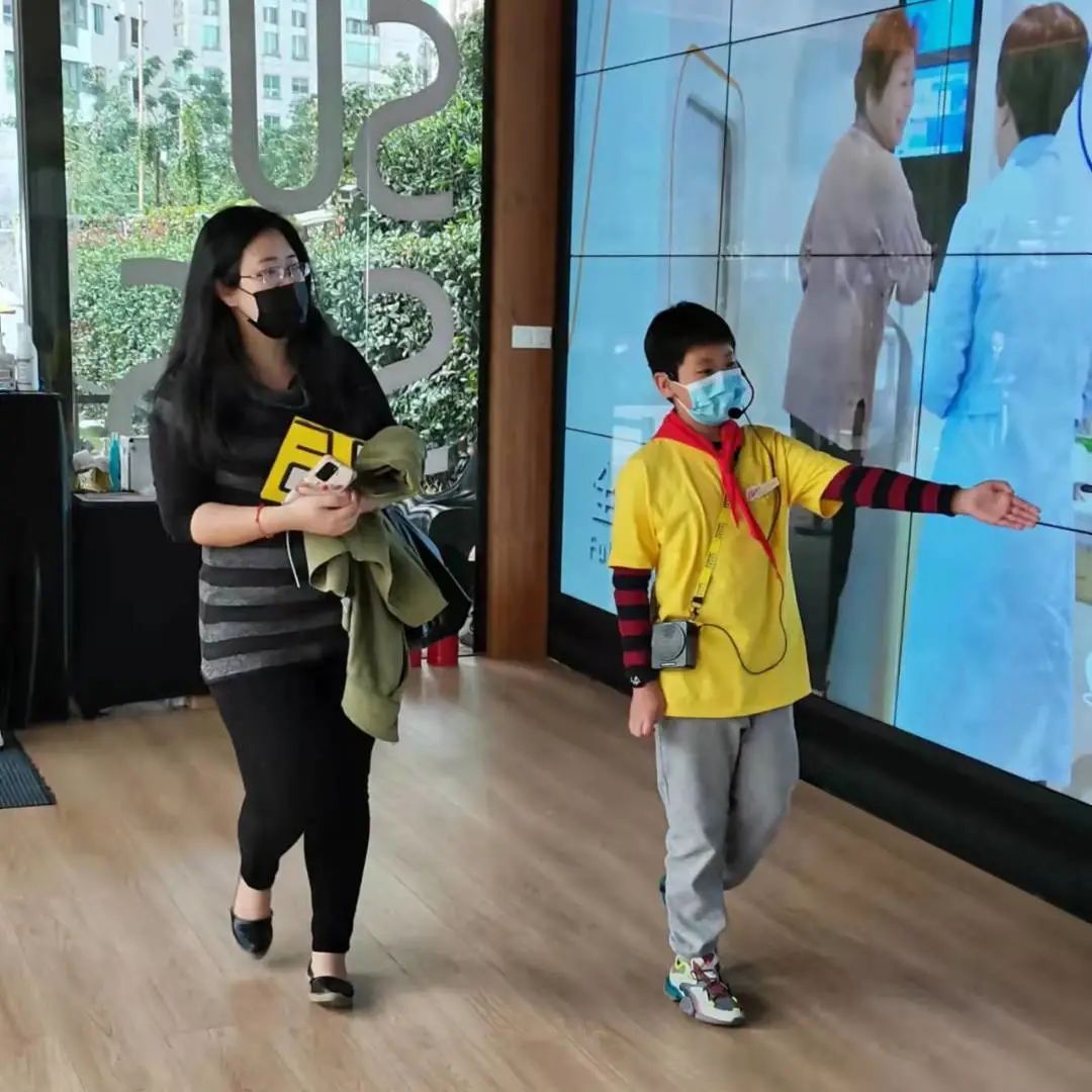 “大家好,我是小小导赏员李艾璞。请问需要我为你们讲解吗?”