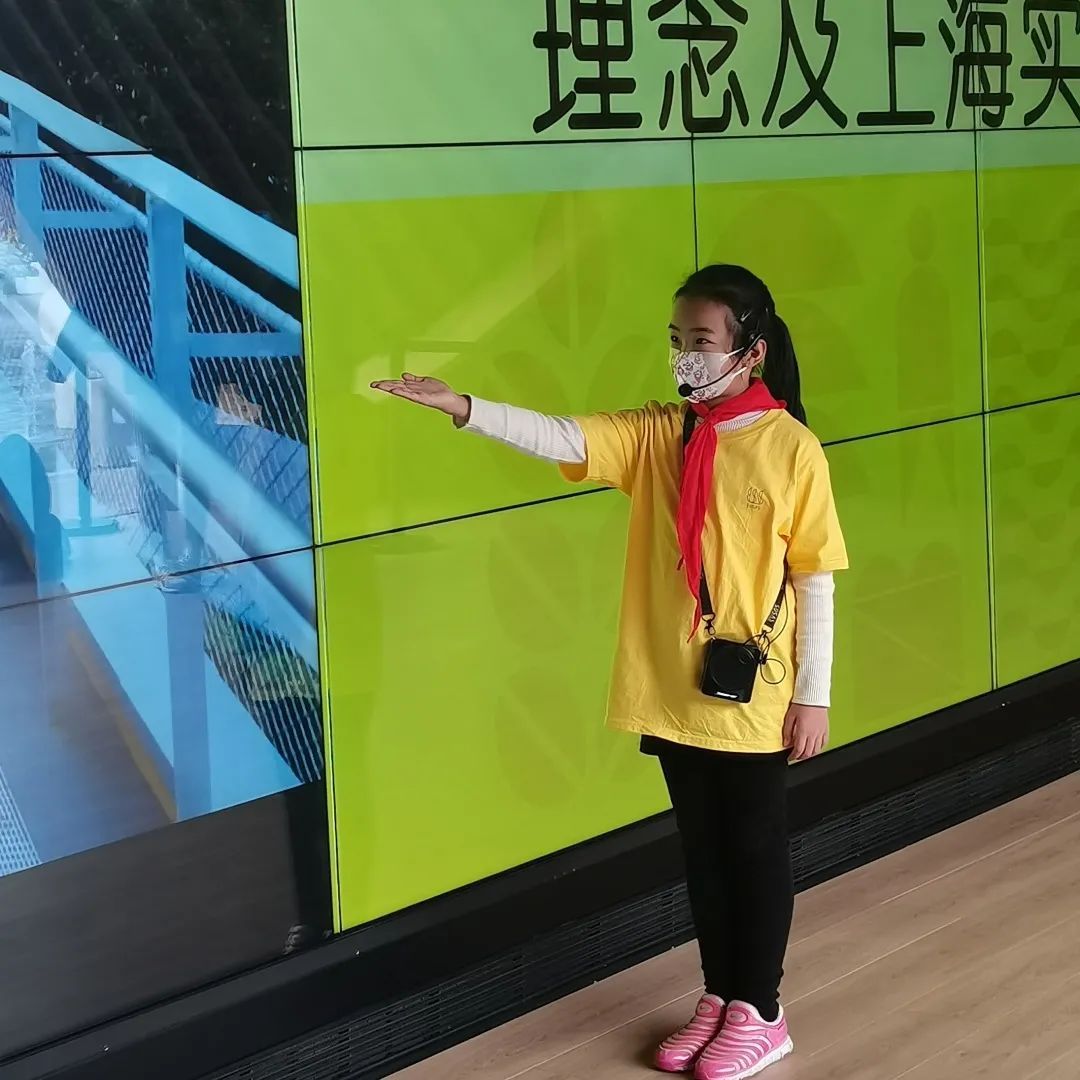 我的妈妈是做展示设计的,我从小深受熏陶,经常去看艺术展览。去年在杨浦滨江遇到了一些小姐姐小哥哥的讲解,那时候就萌生了要成为小小导赏员的念头。
